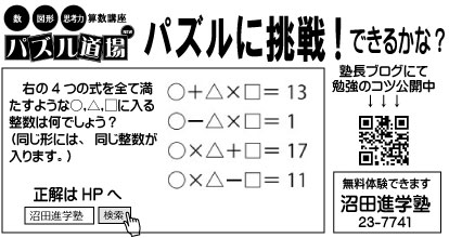 パズル道場は、このようにパズルを通じて、思考力や応用力を養っていく特別な講座です。